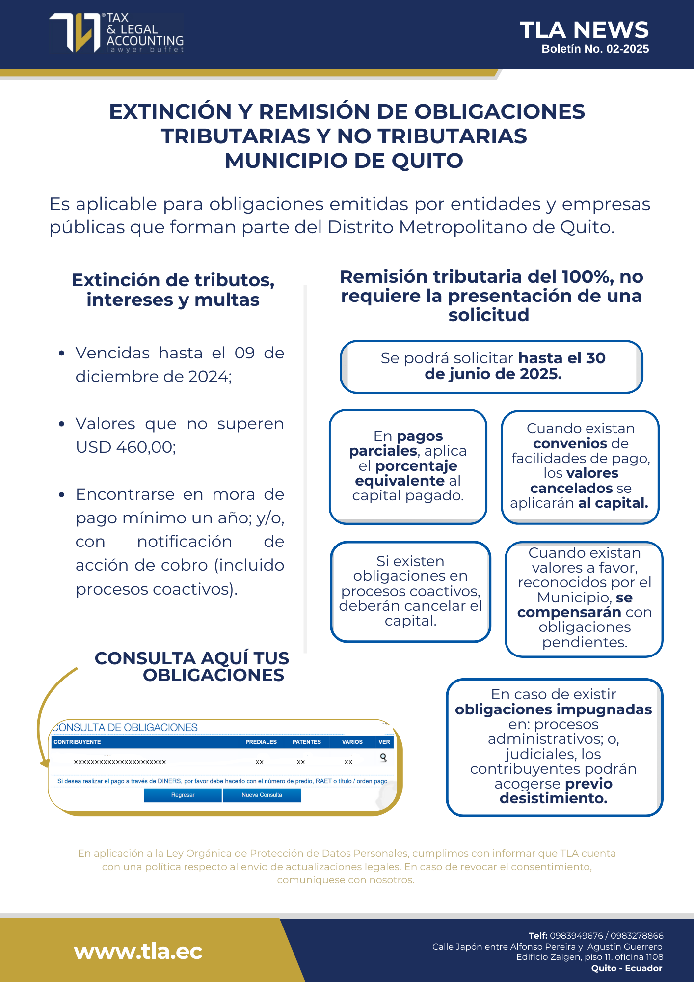 Extinción y remisión de obligaciones tributarias y no tributarias del Municipio de Quito